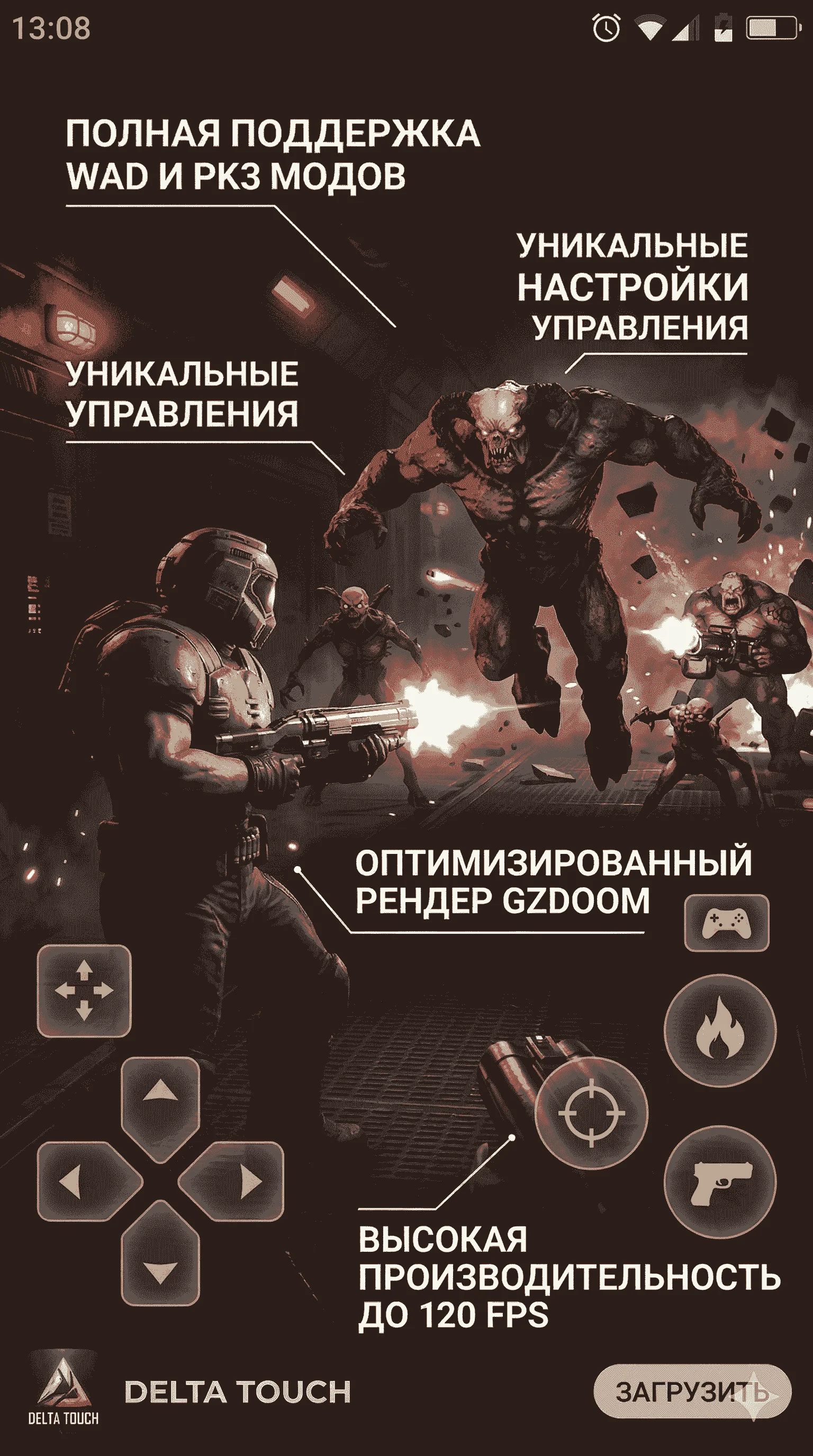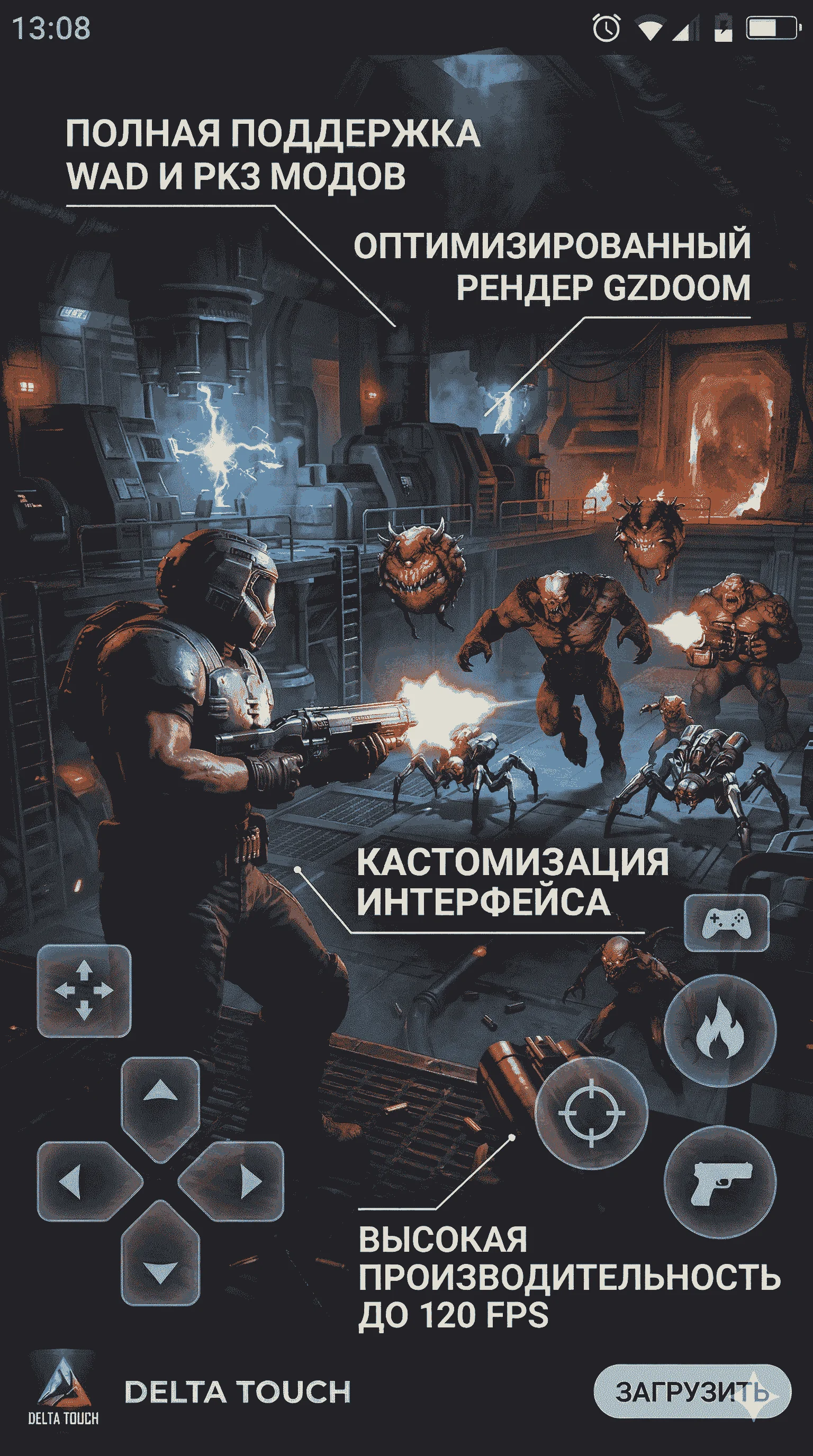 Вы находитесь в правильном месте: безопасно скачать актуальную и полностью рабочую версию этого приложения вы можете прямо на этой странице нашего сайта. Delta Touch представляет собой не просто рядовой эмулятор, а масштабный агрегатор лучших современных портов (движков), созданный командой выдающихся энтузиастов из Open Touch Gaming. Благодаря этой утилите ваш девайс превратится в ультимативную ретро-станцию для запуска таких бессмертных шедевров, как Doom, Doom II, Doom 3, Heretic, Hexen, Strife.