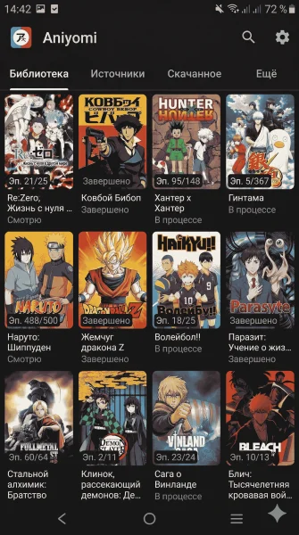 Встроенный плеер Aniyomi заслуживает отдельного внимания. Он поддерживает практически все современные форматы видео, позволяет переключать звуковые дорожки, выбирать субтитры. Пользователям доступны: